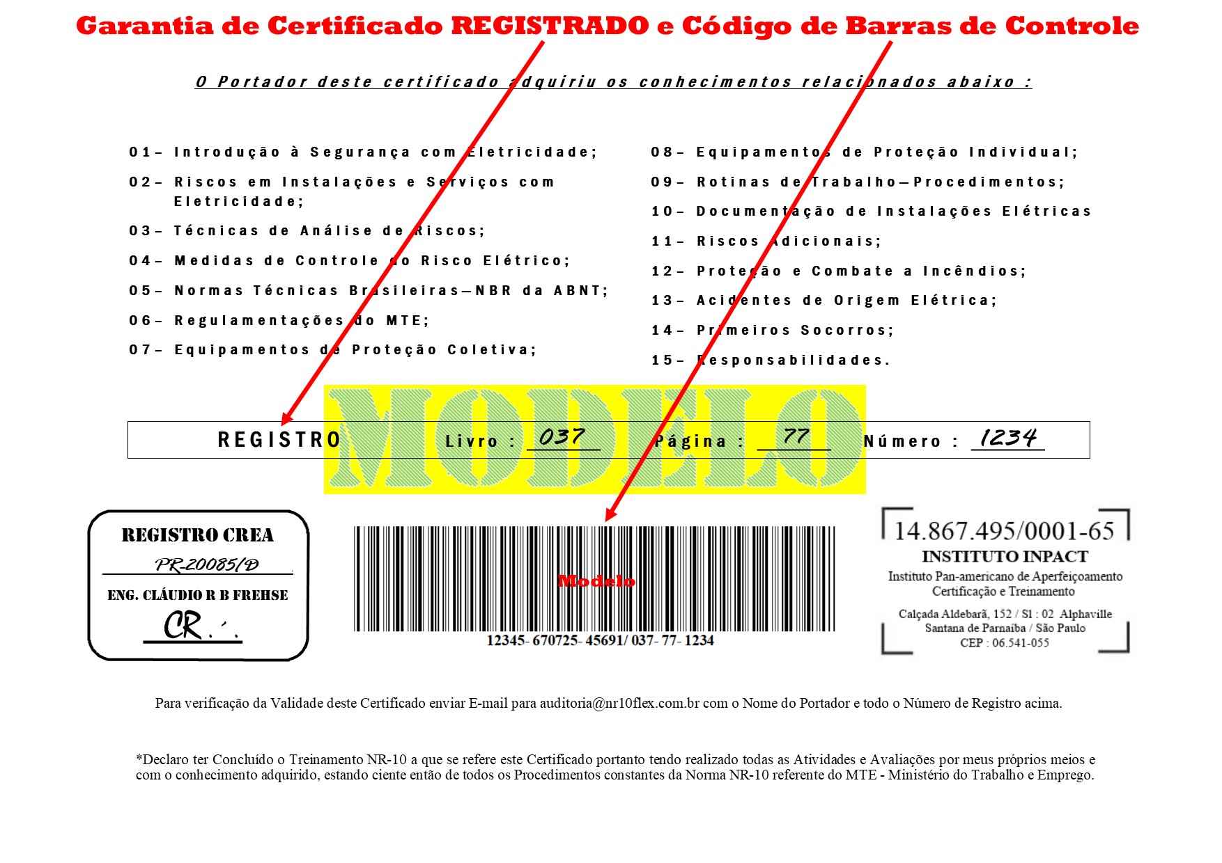 01) o Treinamento NR-10 é considerado como Curso Livre, a exemplo dos Treinamentos de Línguas ou Idiomas e de Informática, que também Certificam seus alunos, não existindo a exigência de se Registrar os Certificados junto ao Ministério da Educação e Cultura ou Secretarias de Estado da Educação e do Desporto para que tenham validade Nacional,